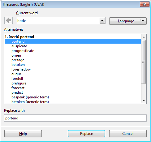 Redesign of Thesaurus The thesaurus dialog has been redesigned for better usability. In addition, a new "Synonyms" sub menu in the default context menu allows you to select a synonym for the currently selected word right away.