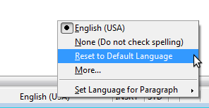 Resetting Text to the Default Language in Writer You can now reset the language of text back to the default language using the language status bar or the Tools > Language menu.